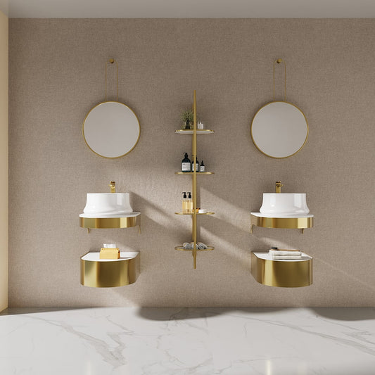 18" Modern Luxury Floating Bathroom Vanity Set With Single Sink in Gold & White