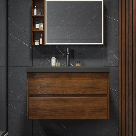 Bathroom Vanity Set 31.5" Modern Floating Concrete Bathroom Vanity Walnut with Sink