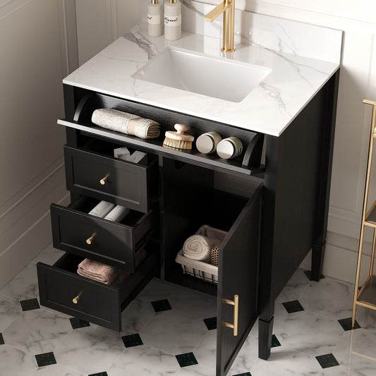 Bathroom Vanity Set 29.9'' Modern Freestanding Sintered Stone Bathroom Black with Sink