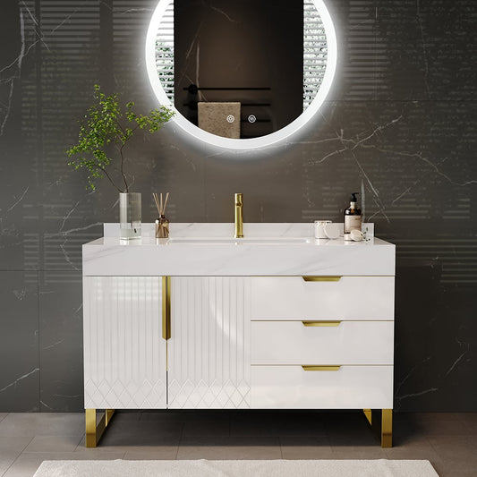 36" Modern White Bathroom Vanity Ceramics Single Sink Freestanding with 3 Drawers