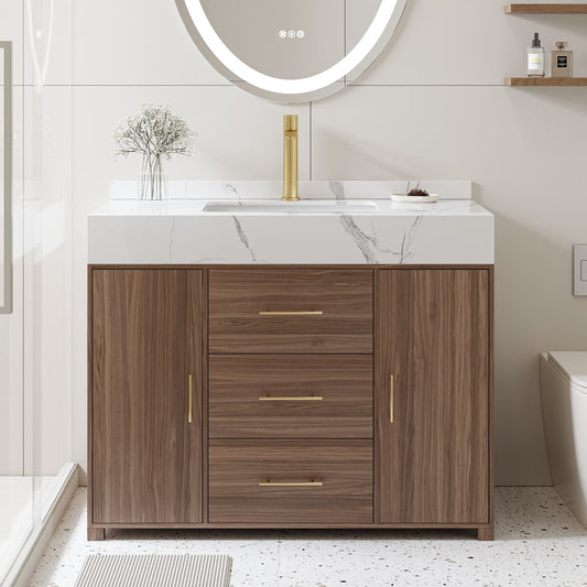 Modern 39" Walnut Sintered Stone Top Bathroom Vanity Set