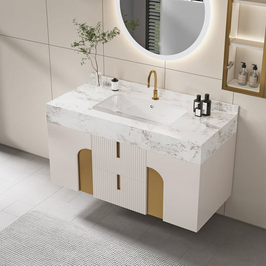 Bathroom Vanity Set 35.4" Modern Stone Resin Floating Bathroom Vanity with Sink
