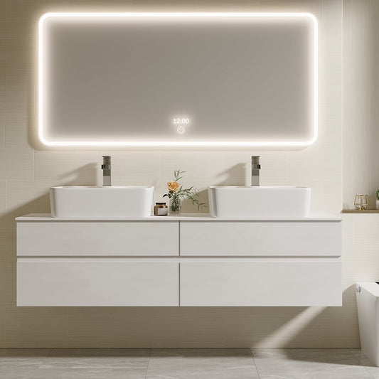 60" Floating Bathroom Vanity Set with Faux Marble Top & Ceramic Vessel Sink