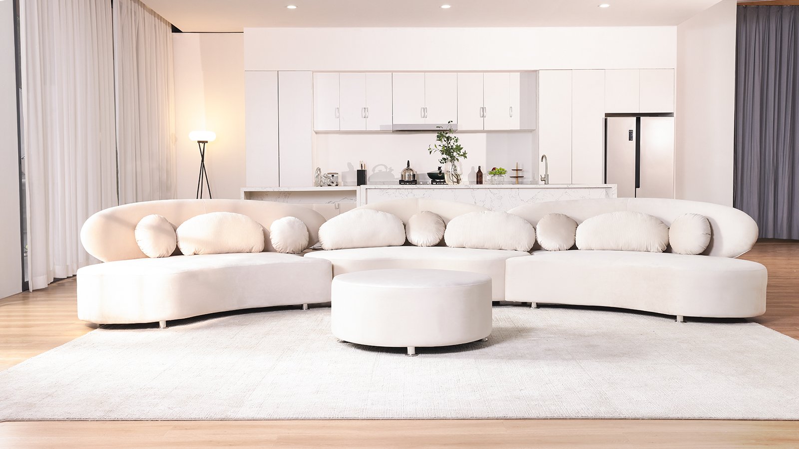 Our sofa offers 7-person capacity, the ottoman can seamlessly transition between a coffee table and seat cushion.