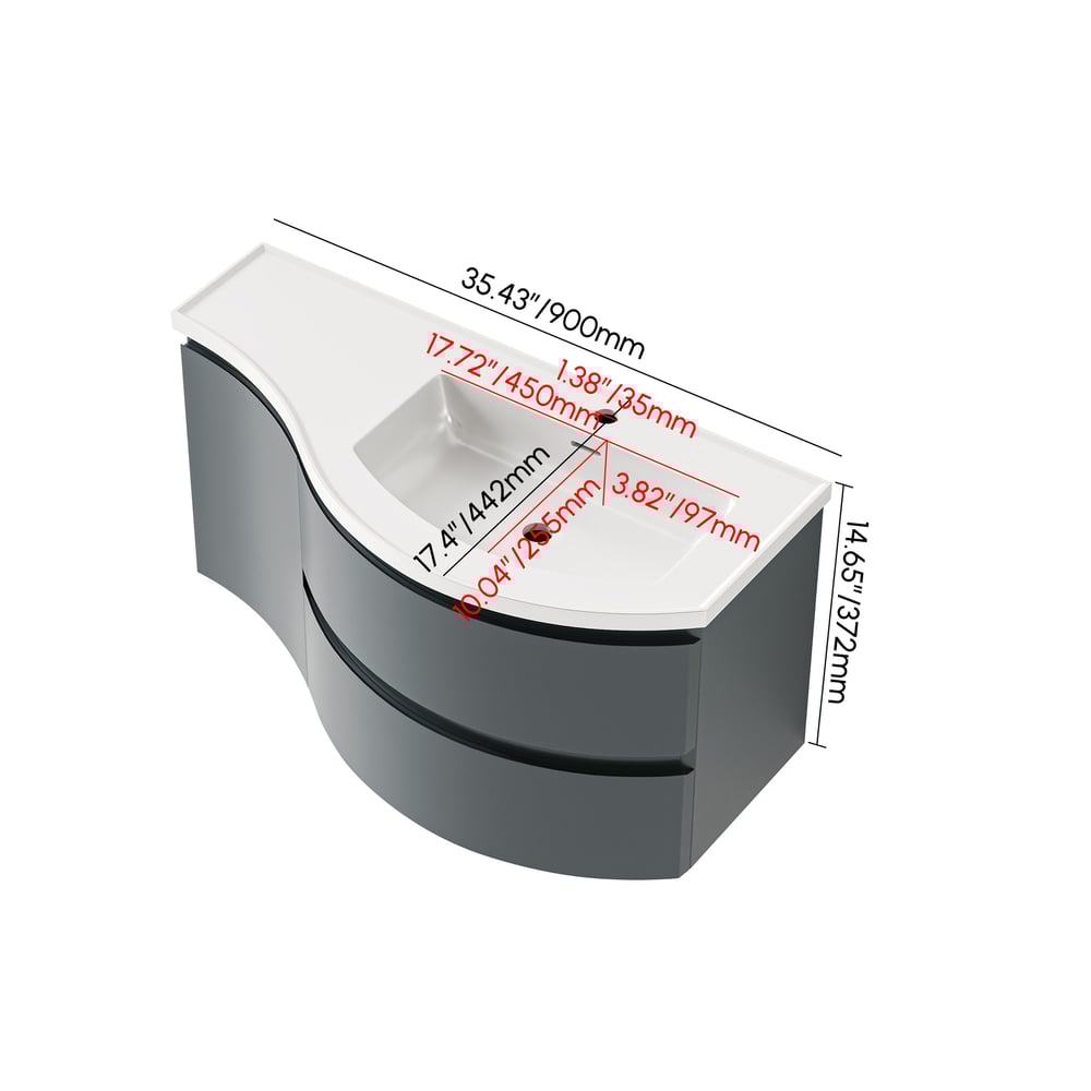 Bathroom Vanity Set 35.4" Modern Stone Resin Floating Bathroom Vanity with Sink