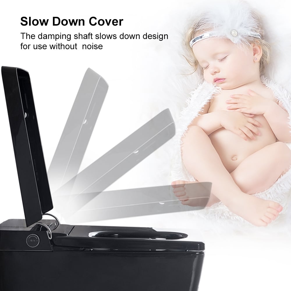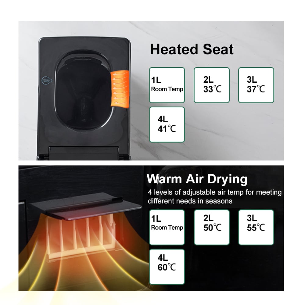 Pamper yourself in this advanced automatic toilet and upgrade your bathroom. Hands-free operation provides self-cleaning bidet functions, heated seat, and adjustable drying for comfort. This sleek black design with an automatic lid adds style to your bathroom while offering eco-friendly, water-saving features with a flush rate of 1.32 GPF. Convenience abounds because you will have remote control to change settings like water temperature and seat warmth to your liking for a totally personalized experience.