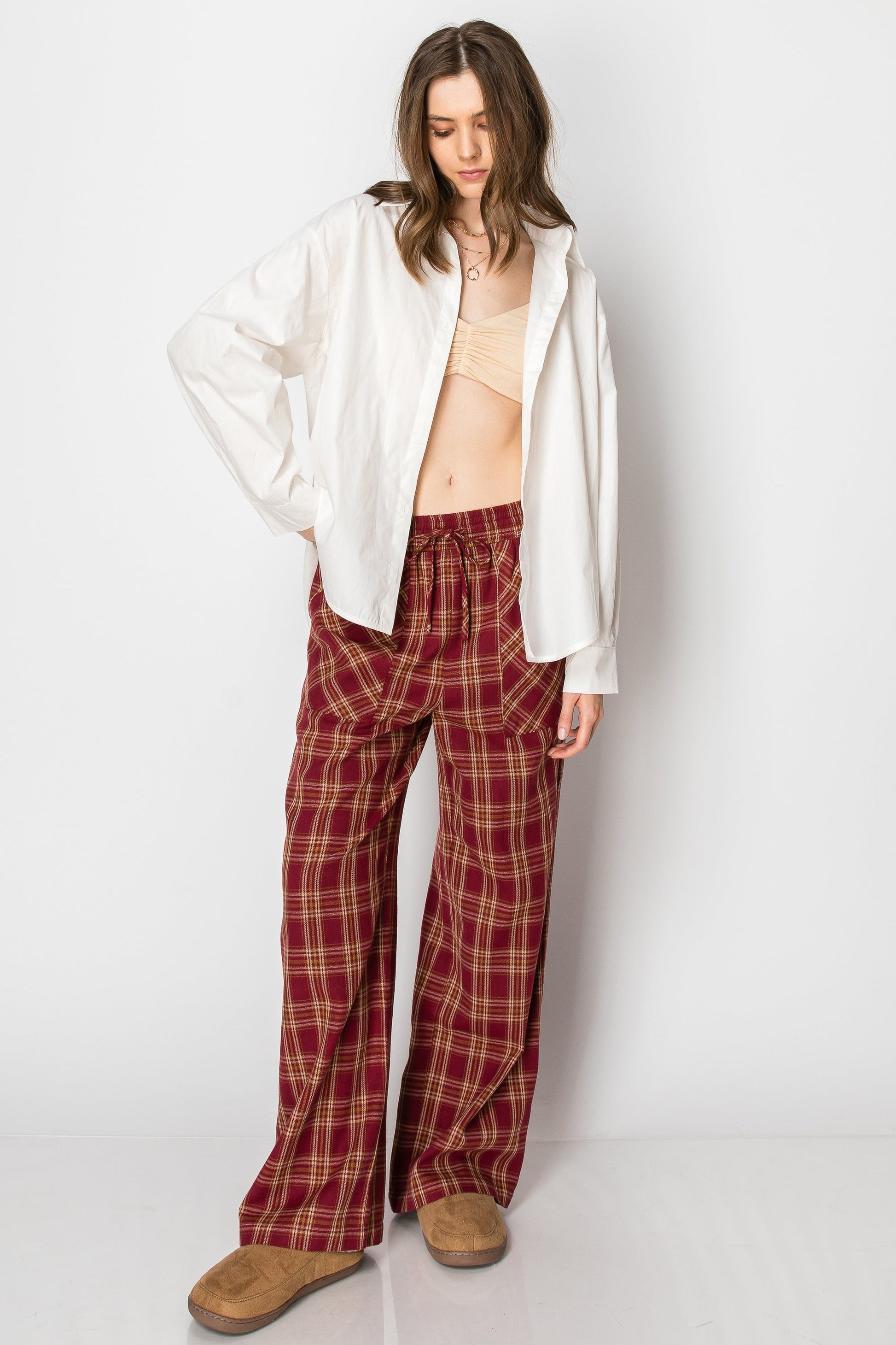 - One (1) pair of Draw String Plaid Wide Leg Pants with Pockets.