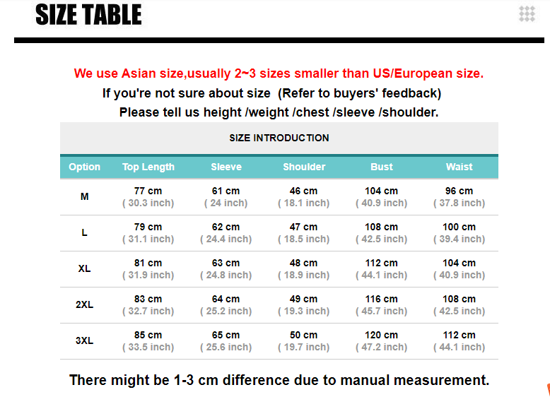 - Multiple Size Options: Sizes ranging from M to 3XL to ensure a perfect fit.