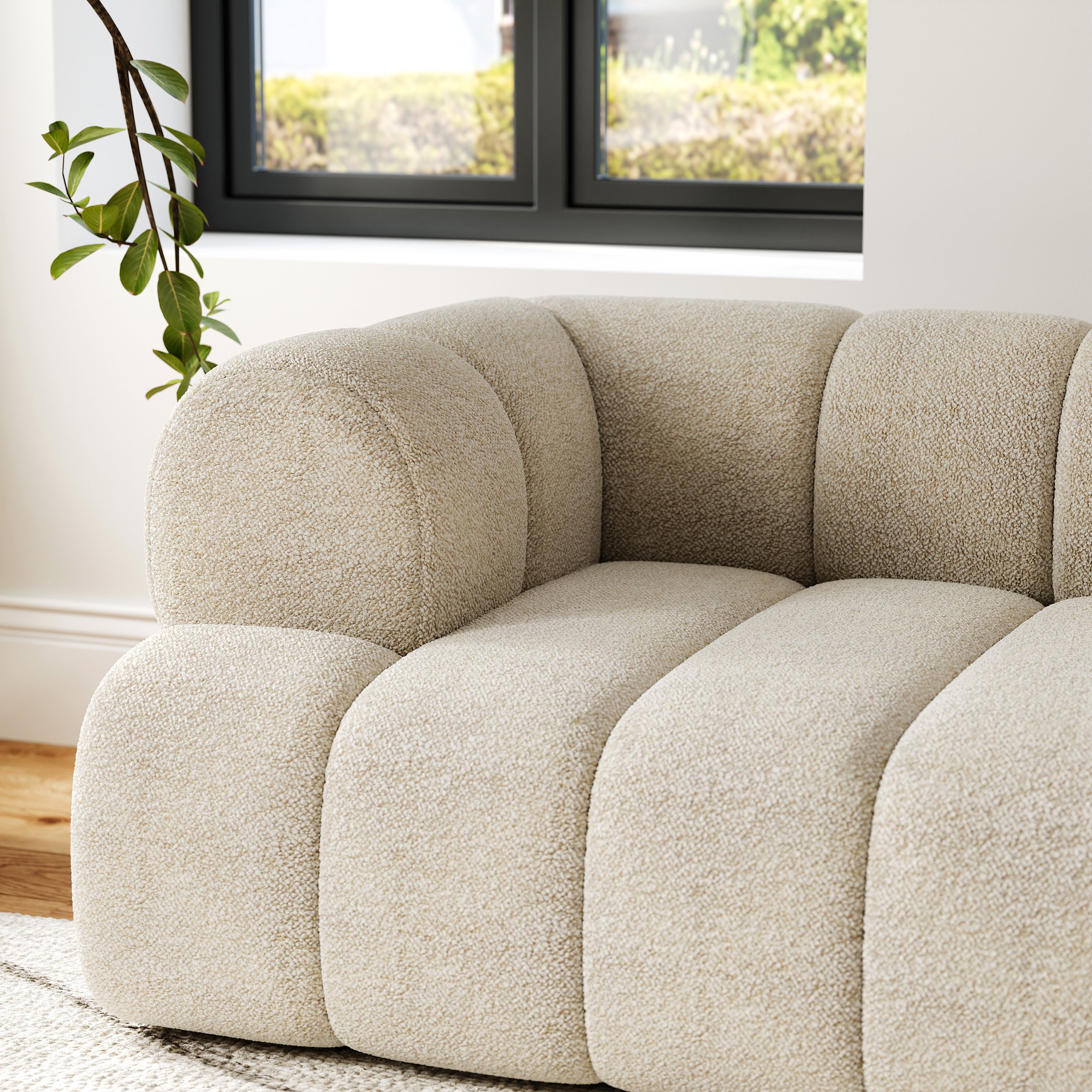 Vertical channel tufting creates a geometric texture that catches the eye, giving your room a designer touch that standard sofas just can’t match.
