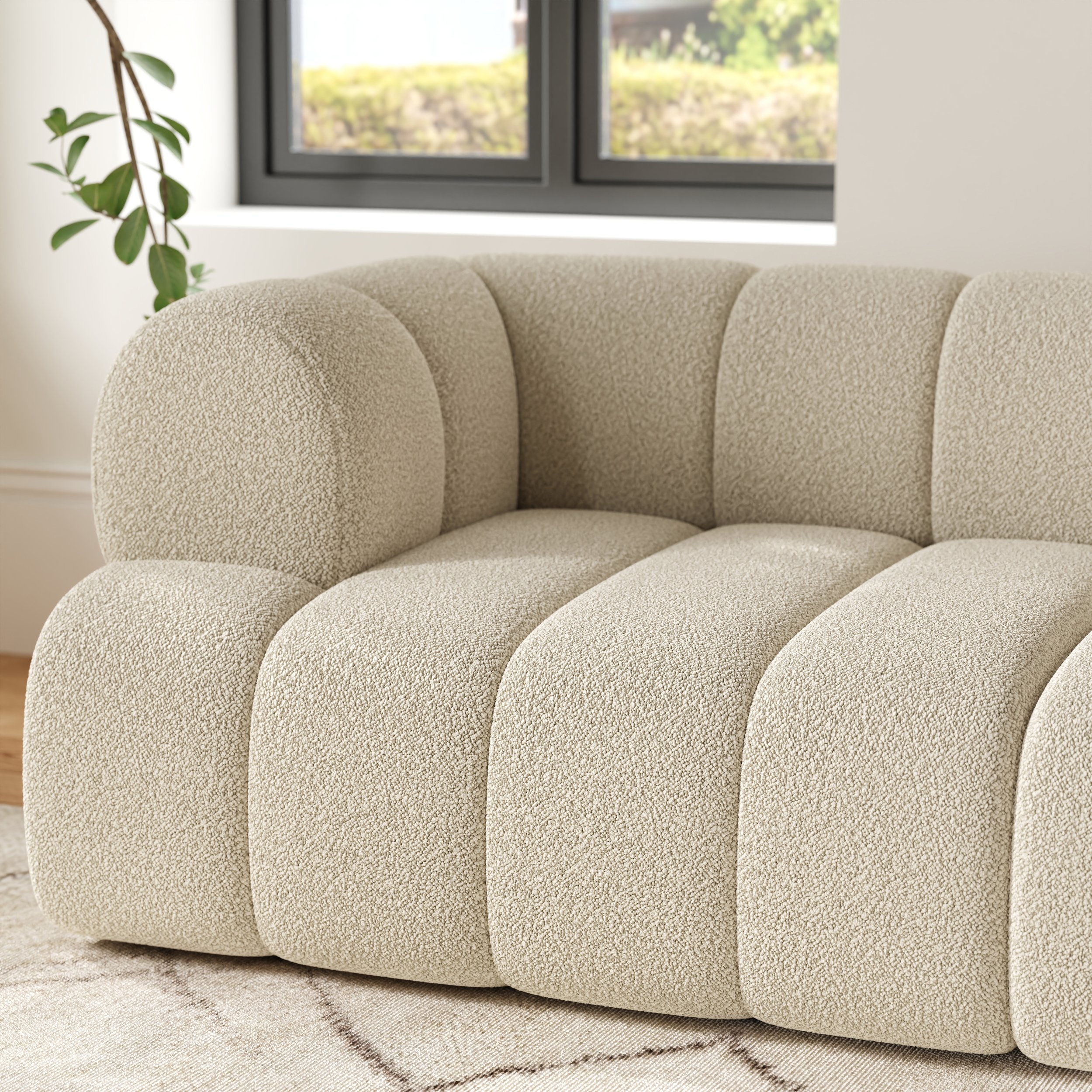 Vertical channel tufting creates a geometric texture that catches the eye, giving your room a designer touch that standard sofas just can’t match.