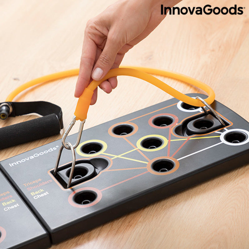 Transform your home workouts with the InnovaGoods Pulsher Push-Up Board, a comprehensive fitness system designed to target all major muscle groups. This innovative board features color-coded positions for chest, shoulders, back, and triceps, guiding you through effective push-up variations. The included resistance bands add versatility, allowing you to work your arms and legs for a complete full-body workout. With its detachable design and exercise guide, the Pulsher Push-Up Board is perfect for anyone looking to improve their strength, fitness, and overall physique from the comfort of their home.